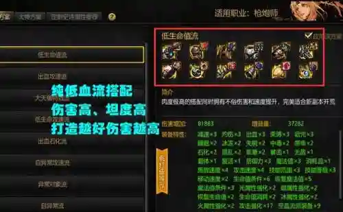“纯低血流”适合有一定打造的玩家,既有伤害、又有坦度,算是非常万金油的搭配;