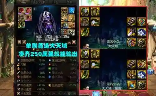 “优点”:对打造要求极低,只要凑齐250属强即可完美触发;单刷能力极强,几乎所有单人能进的副本,大天域都可以轻松通关。