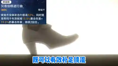 第二位辅助队友则推荐布洛妮娅,因为她的大鸭鸭技能不仅可以有效补足镜流稀缺的增伤乘区,还能通过战技拉条让镜流快速连发,第一时间启动转魄,最后再搭配一个任意奶妈就能在混沌回忆里保底打穿一路。如果没有大鸭鸭,也可以选择额外再带一位副C输出。