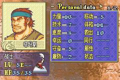 BOSS为5级的战士 塔马斯。属性面板得到很大提升,只能用马库斯才能造成有效伤害。击败后罗伊制压过版。