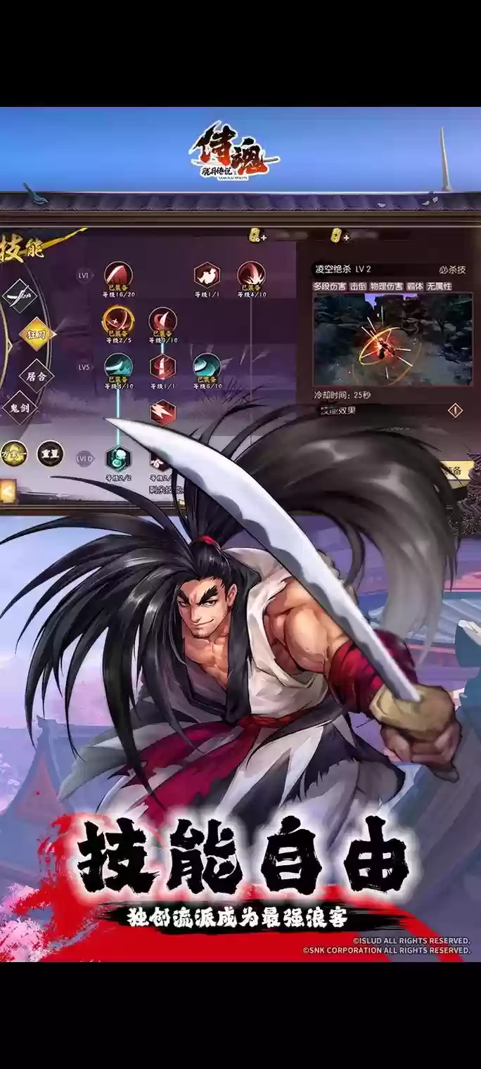 2、侍魂胧月传说职业选择居合最好。这个职业的特点就是机动性强、攻击速度快,作为橘右京的代言职业一定会有一大批玩家会选择。坦白说居合是一个需要氪金的职业,不建议白嫖党玩,想要玩好不被嫌弃的话起步15武器+属性珠子,然后打本基本可以稳定前四。