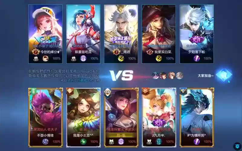 擅长合作的英雄:选择技能、定位和风格互补的英雄,形成强大的团队合力。例如,上单可以选择程咬金、典韦等坦克英雄,中单可以选择嬴政、诸葛亮等法师英雄,打野可以选择李白、韩信等刺客英雄,下路可以选择孙尚香、马可波罗等射手英雄,辅助则可以选择张飞、牛魔等具有控制能力的英雄。