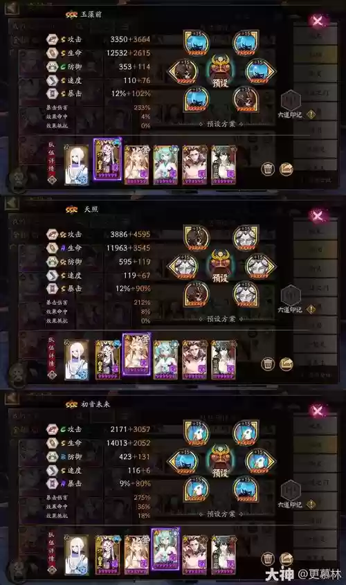 2、青坊主:携带佛印x禅心、佛光x慈悲x法界唯心x1。青坊主作为辅助角色,能够提供治疗、增益等效果,增强队伍的整体续航能力。酒吞童子:携带醉里乾坤x狂气、鬼王、无尽愤怒x觉醒·酒吞童子、百鬼夜行。酒吞童子是队伍的主要输出点,通过其强大的输出能力,可以快速消灭敌方单位。