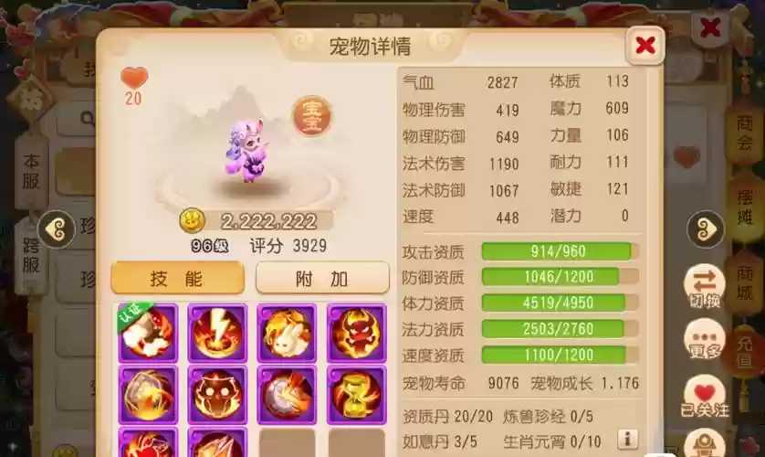 《梦幻西游手游》精锐任务宠购买指南:基本购买原则 看面板情况:核心要素:气血、物理伤害(隐攻)或法术伤害(群法)、速度(配速/龟速)。达标数值:根据召唤灵的代数和类型,设定具体的面板数值要求,如隐攻吸血鬼的伤害和血量标准。